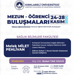 | 24-28 KASIM 2025 TARİHLERİ ARASINDA FAKÜLTEMİZDE MEZUN-ÖĞRENCİ BULUŞMALARI GERÇEKLEŞTİRİLECEK 213 Okunma Sağlık Bilimleri Fakültesi olarak, Kırklareli Üniversitesi Kariyer Uygulama ve Araştırma Merkezi ile... | ||