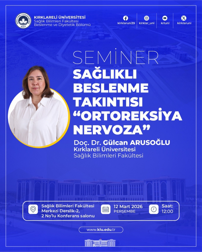 Üniversitemiz Sağlık Bilimleri Fakültesi Beslenme ve Diyetetik Bölümü tarafından “Sağlıklı Beslenme Takıntısı: Ortoreksiya Nervoza” başlıklı bir seminer düzenlenecektir.
