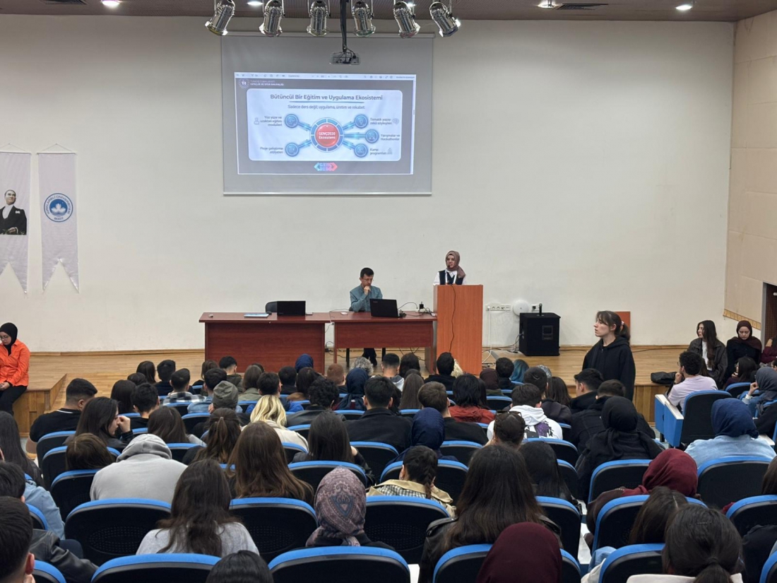 Etkinlikte, Hemşirelik Bölümü öğrencilerinin dijital yetkinliklerinin geliştirilmesi, yapay zekâyı güvenli, etik ve etkili kullanabilmelerine ilişkin bilgi ve becerilerinin artırılması amaçlandı.