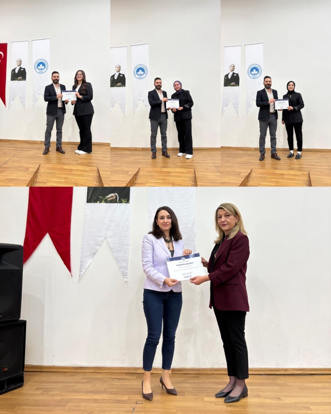Program sonunda Yaşım Çocuk Kulübü Danışmanı Dr. Öğr. Üyesi Arzu Akar Gençer’e teşekkür belgesi Dekan Yardımcısı Doç. Dr. Yeliz Mercan tarafından takdim edildi. Kulüp Başkanı Meryem Süner ile Kulüp Başkan Yardımcıları İlkbal Özden ve Sedanur Yıldırım’a teşekkür belgeleri Dekan Yardımcısı Dr. Öğr. Üyesi Muhammet Ali Çakır tarafından takdim edildi.